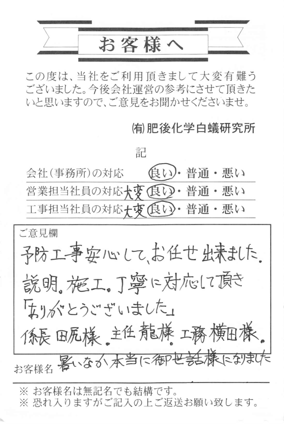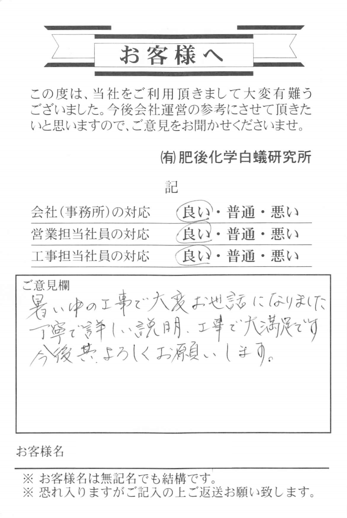 合志市にお住いのⅯ様よりお葉書を頂きました。工事の方もご満足いただけ大変嬉しい限りです。こちらこそ次回も宜しくお願いいたします! 今後も何か気になる事などございましたらお気軽にご相談ください! お葉書ありがとうございました! 営業 矢城 工務 龍 永廣 |