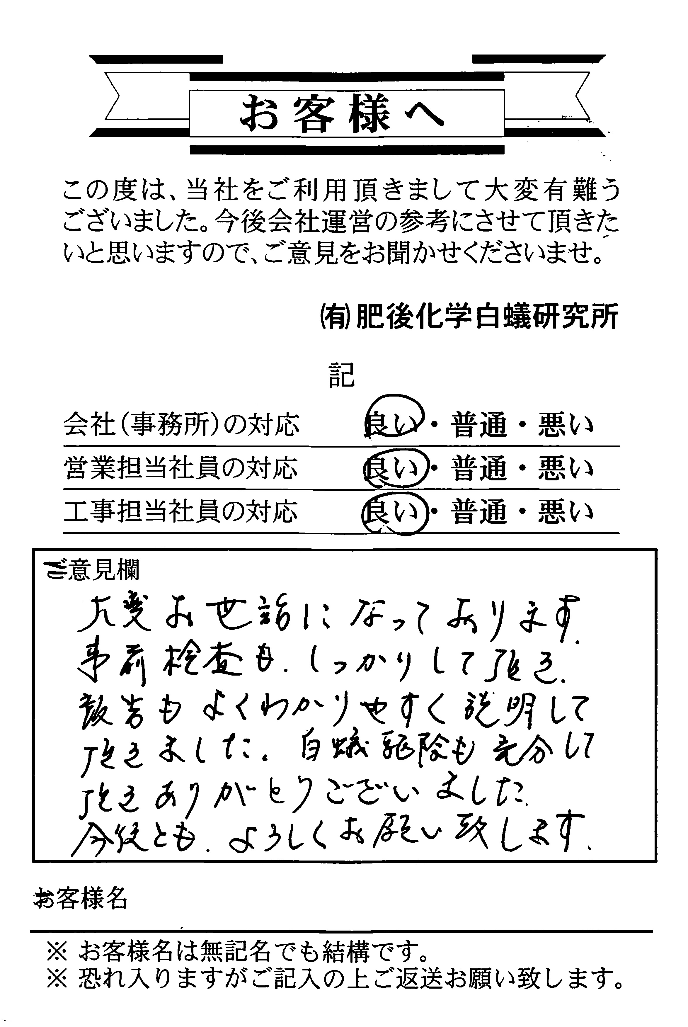 熊本市西区にお住いのY様よりお葉書を頂きました。